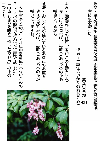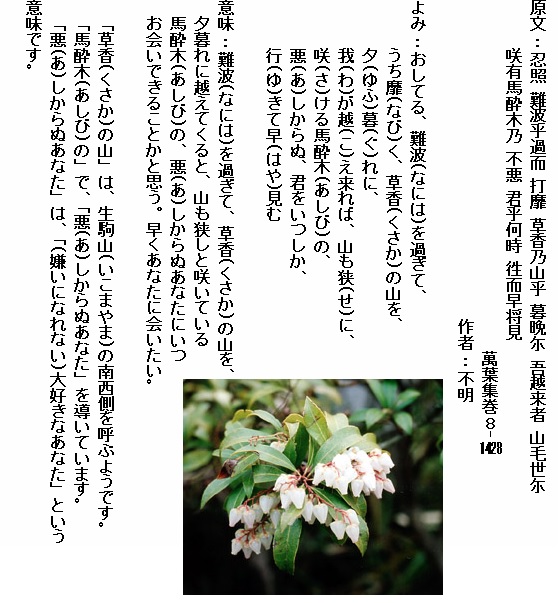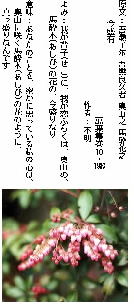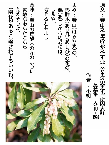 巻10-1926: 春山の 馬酔木の花の 悪しからぬ