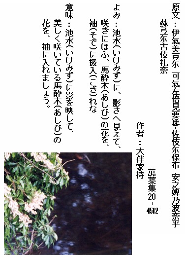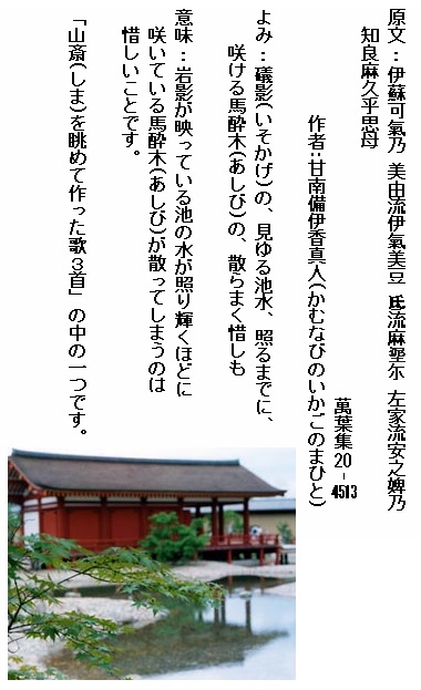 巻20-4512: 池水に 影さへ見えて 咲きにほふ