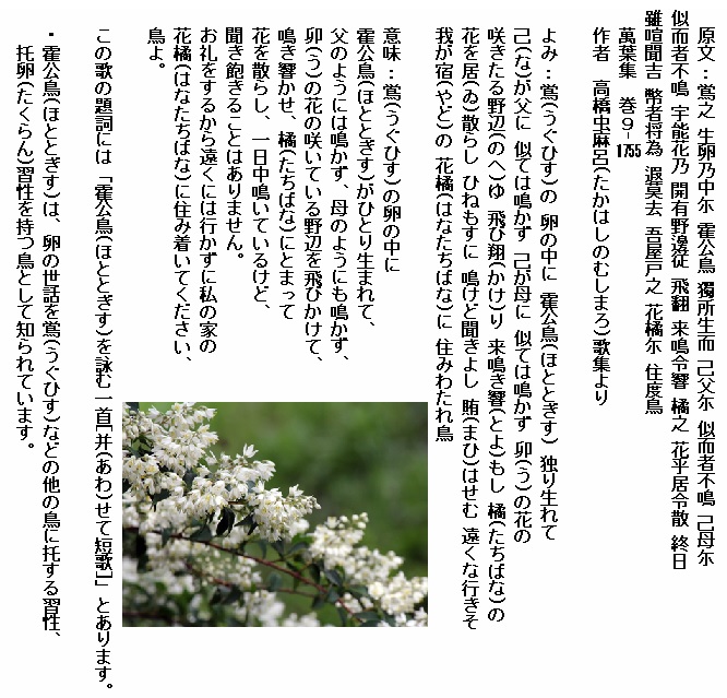 巻9-1755: 鴬の卵の中に霍公鳥独り生れて己が父に.......(長歌)