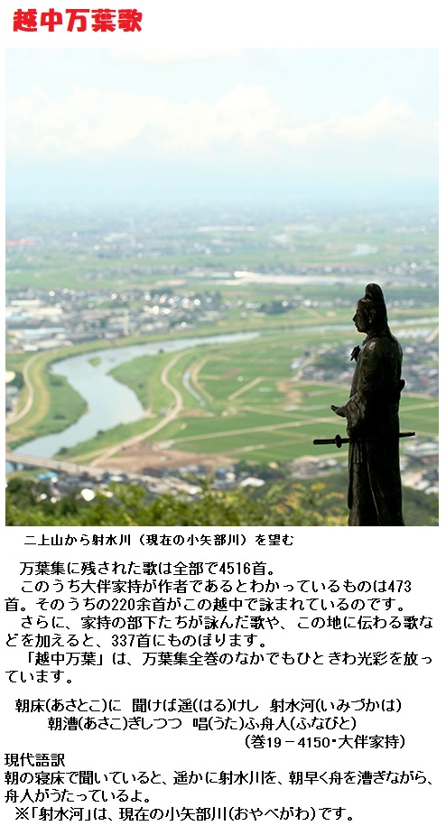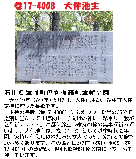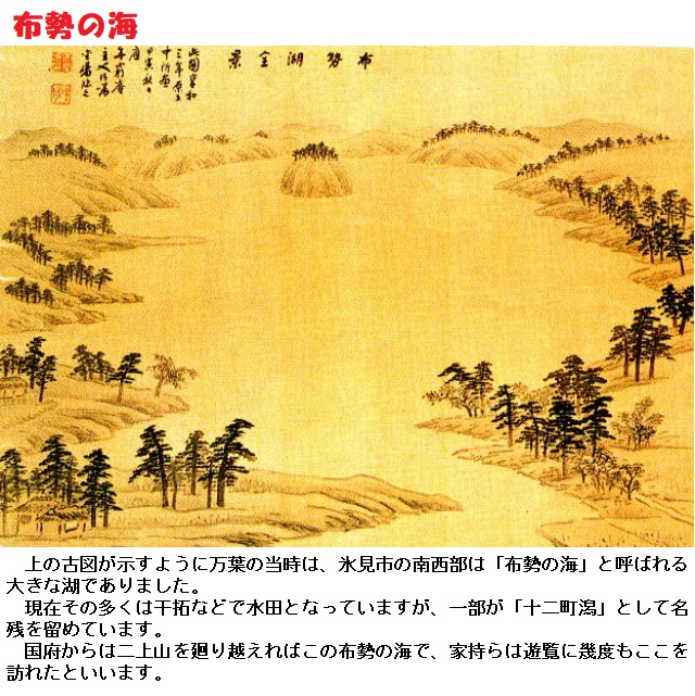 天平19年(西暦747年)4月26日に大伴家持が詠んだ「布勢水海(ふせのみずうみ)に遊覧(ゆうらん)する歌」に唱和した歌です。布勢水海(ふせのみずうみ)は、当時、(現在の)富山県氷見市にあった湖で、いまは存在していません。