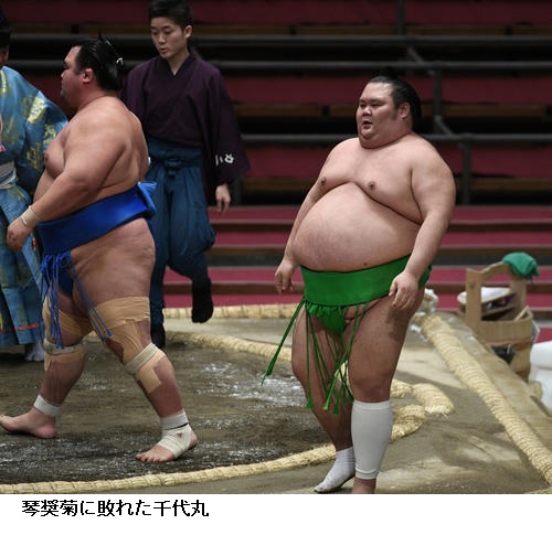 ▽琴奨菊に18日から再出場の千代丸は琴奨菊が寄り切り。琴奨菊は幕内の通算勝ち星を単独8位の707勝としました。