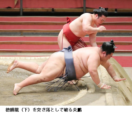 ▽炎鵬に徳勝龍は炎鵬が突き落とし。