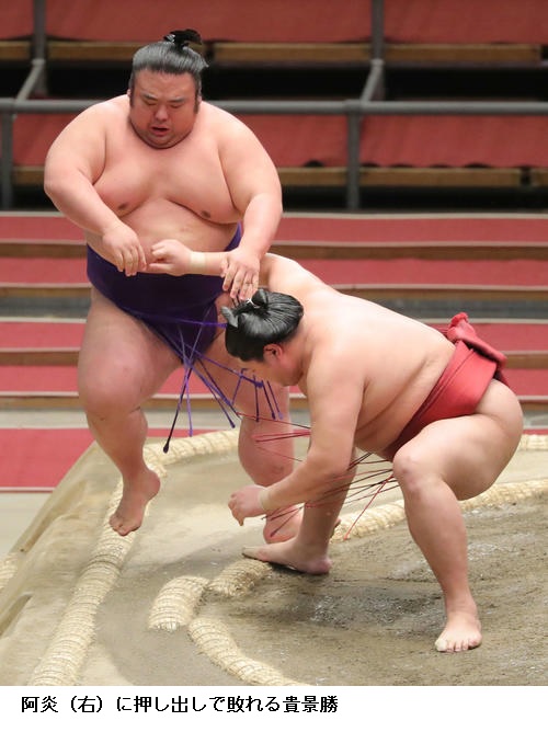 ▽大関 貴景勝にに阿炎は阿炎が押し出し。
