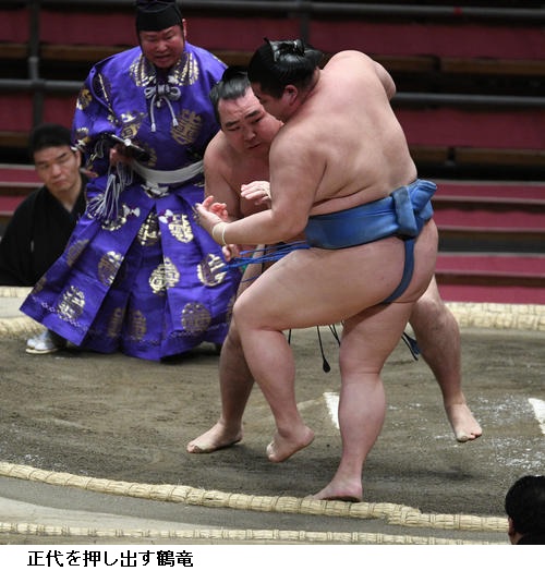 ▽正代に横綱 鶴竜は鶴竜が押し出し。