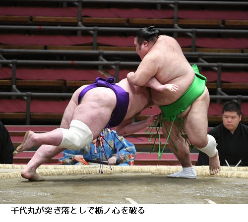 ▽栃ノ心に千代丸は千代丸が突き落としで再出場後の初白星です。