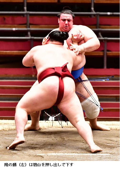 碧山に勝って10勝目をあげた隆の勝は、「相手より低い立ち合いで入って攻めることができたのでよかった。相手が引くことは頭に入れていた。幕内でふたけた勝利はうれしいが残り2日あるのであすも頑張りたい」と気を引き締めていました。