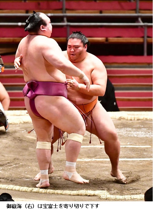 ▽宝富士に御嶽海は、御嶽海が寄り切り。