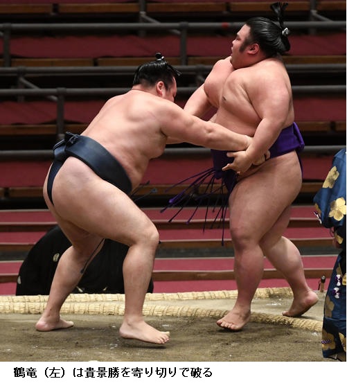 ▽大関 貴景勝に横綱 鶴竜は鶴竜が寄り切りで2敗を守りました。