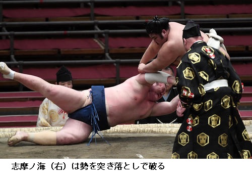 ▽松鳳山に志摩ノ海は志摩ノ海が押し出し。