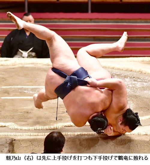 10日目は阿武咲に、12日目には正代に冷静さを欠いた相撲で敗れて2敗に後退したものの13日目には大関昇進がかかる朝乃山を一方的な相撲で破り、再び優勝争いのトップに並んでいました。