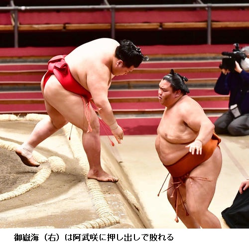 ▽阿武咲に大栄翔は阿武咲が寄り倒し。