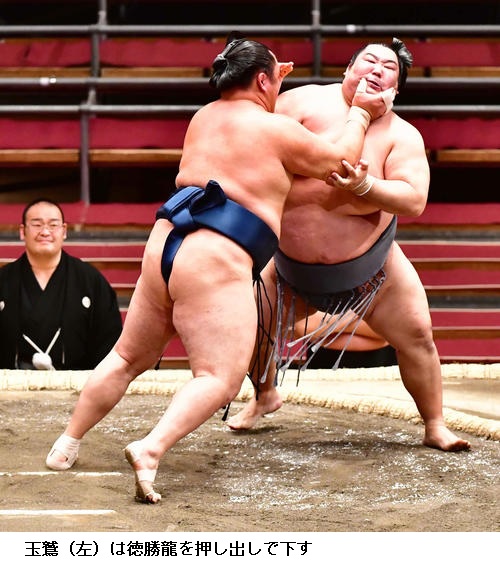 ▽栃煌山に玉鷲は栃煌山がはたき込みで今場所初白星をあげました。玉鷲は負け越しです。