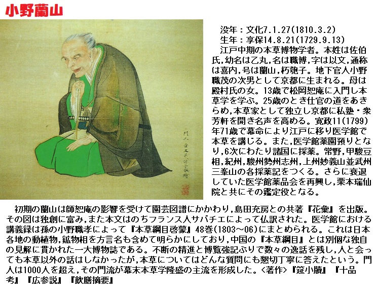 要するに春の七種として今世間一般にいっている唇形科のホトケノザを用うるは極めて非でこれは誤認の甚だしいものである。仮令たとい小野蘭山がそうダといっていてもそれは決して正鵠を得たものではない。七種のホトケノザはキク科植物の一なるタビラコの古名である。このタビラコは飯沼慾斎よくさいの『草木図説』にコオニタビラコとしてその図が出ている。前にもいった様にこれは支那の稲槎菜でその図が『植物名実図考』に在る。すなわち日本ではタビラコ、支那では稲槎菜である。人によりゲンゲバナ(レンゲソウはこの植物本来の名では無い)をホトケノザと称すれどこれは非である。タビラコの和名はキク科の者が本当でムラサキ科の品は偽せ者である。この偽せ者をタビラコの本物と吹聴したのもまた蘭山である。蘭山は実にここに二つの誤謬をあえてしている。